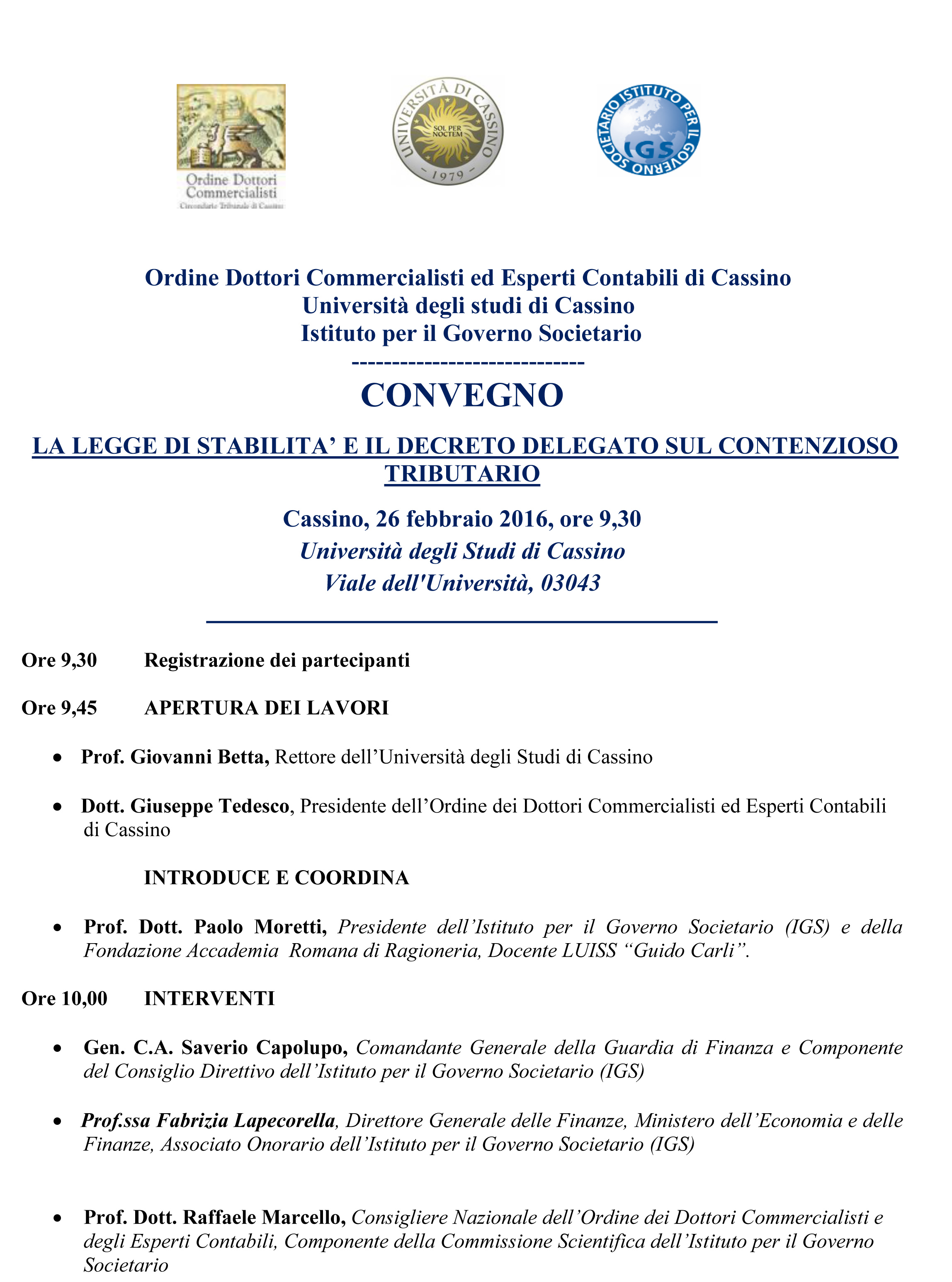 Convegno “La legge di stabilità e il decreto delegato sul contenzioso tributario”