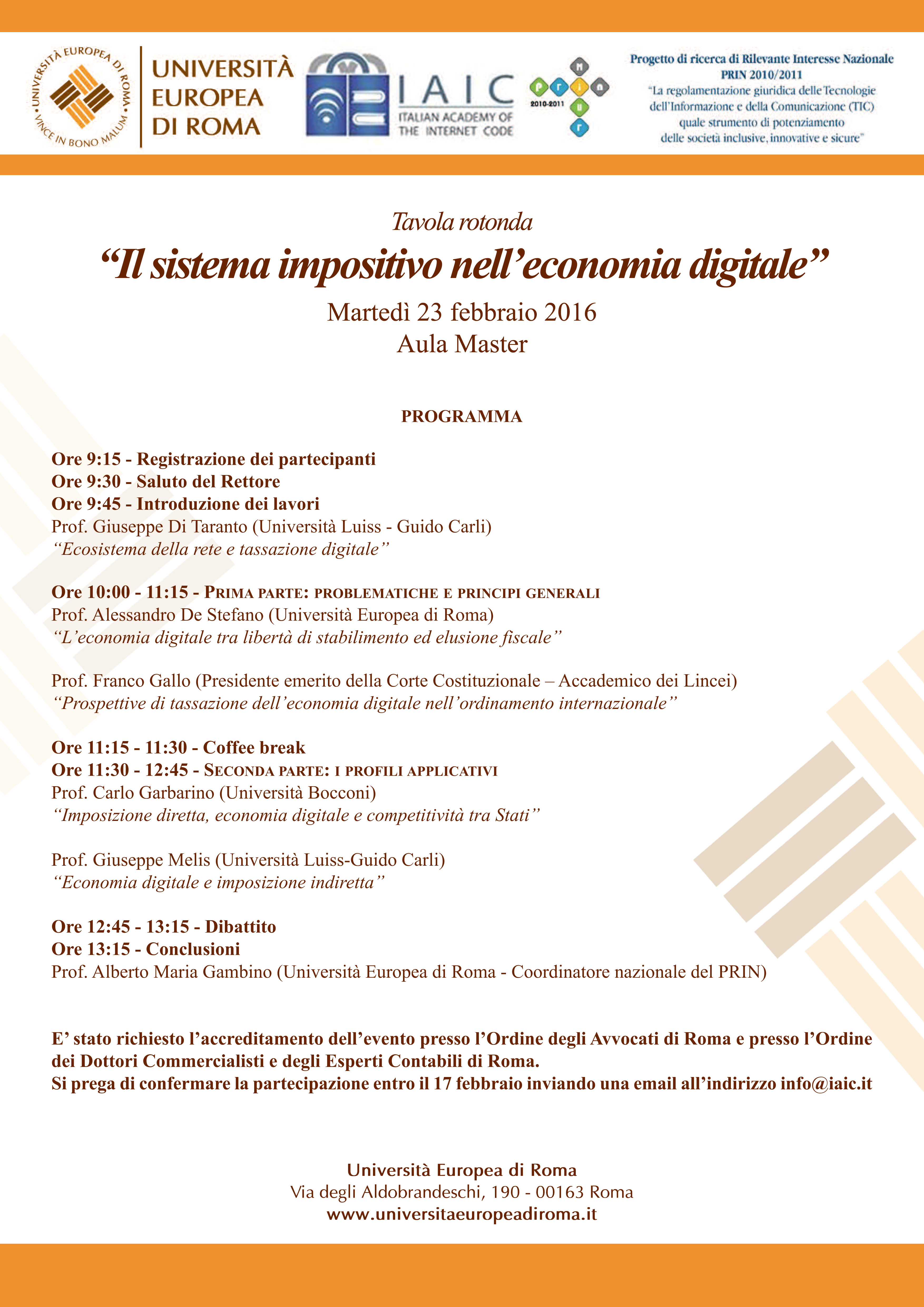 Tavola rotonda “Il sistema impositivo nell’economia digitale”