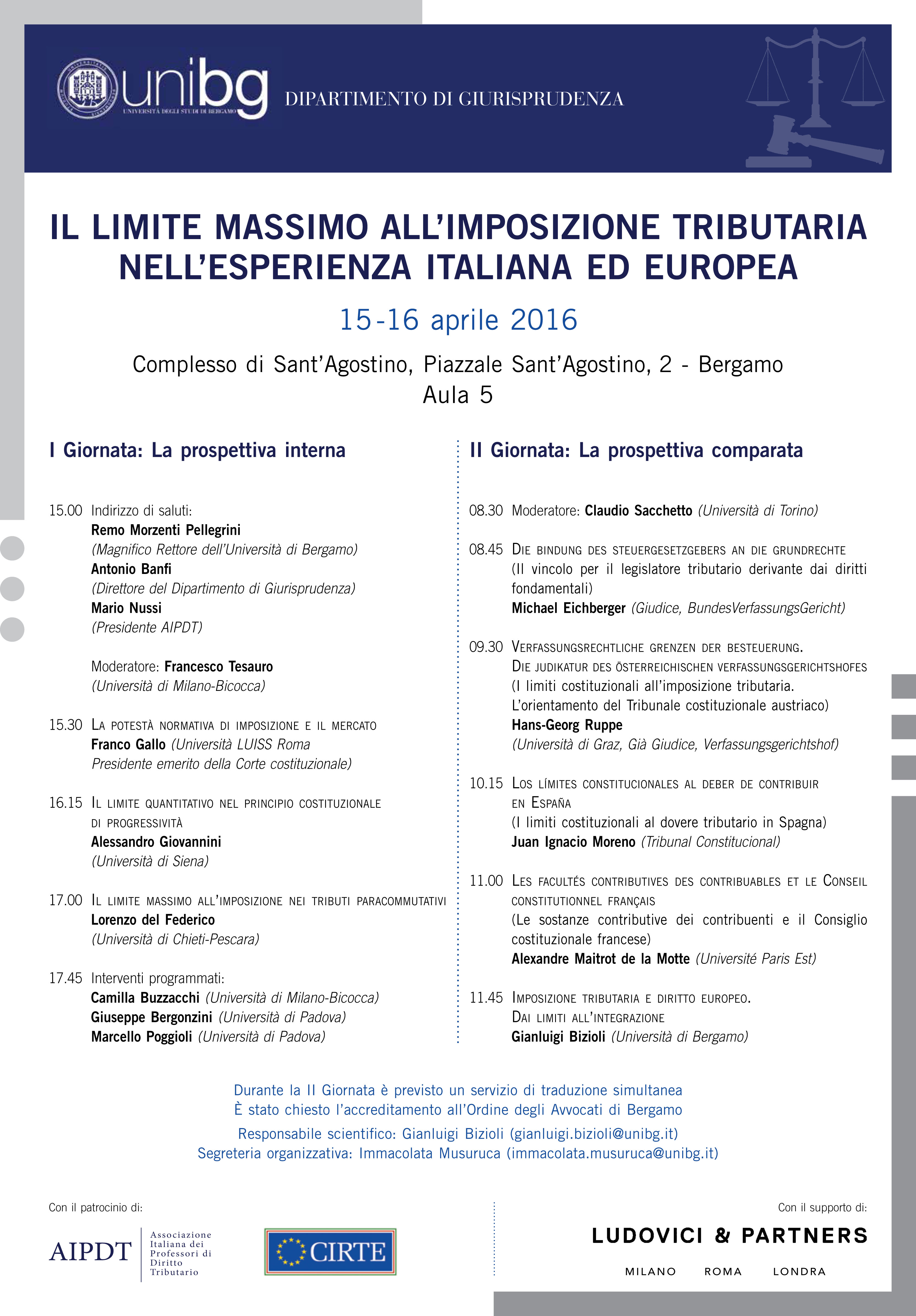 IL LIMITE MASSIMO ALL’IMPOSIZIONE TRIBUTARIA NELL’ESPERIENZA ITALIANA ED EUROPEA, Bergamo 15 -16 aprile 2016