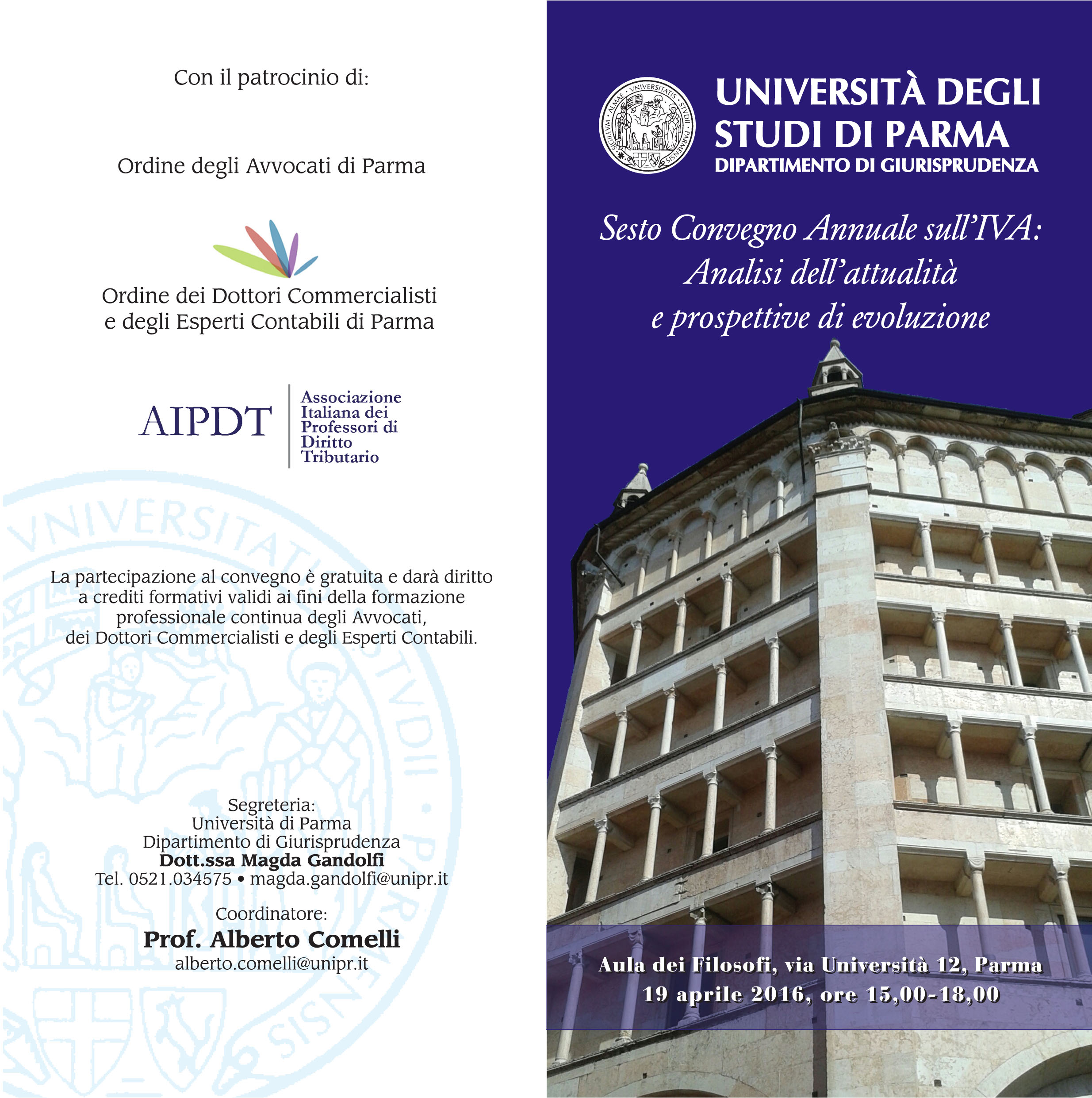 Sesto convegno annuale sull’IVA: “Analisi dell’attualità e prospettive di evoluzione”, Parma 19 aprile 2016