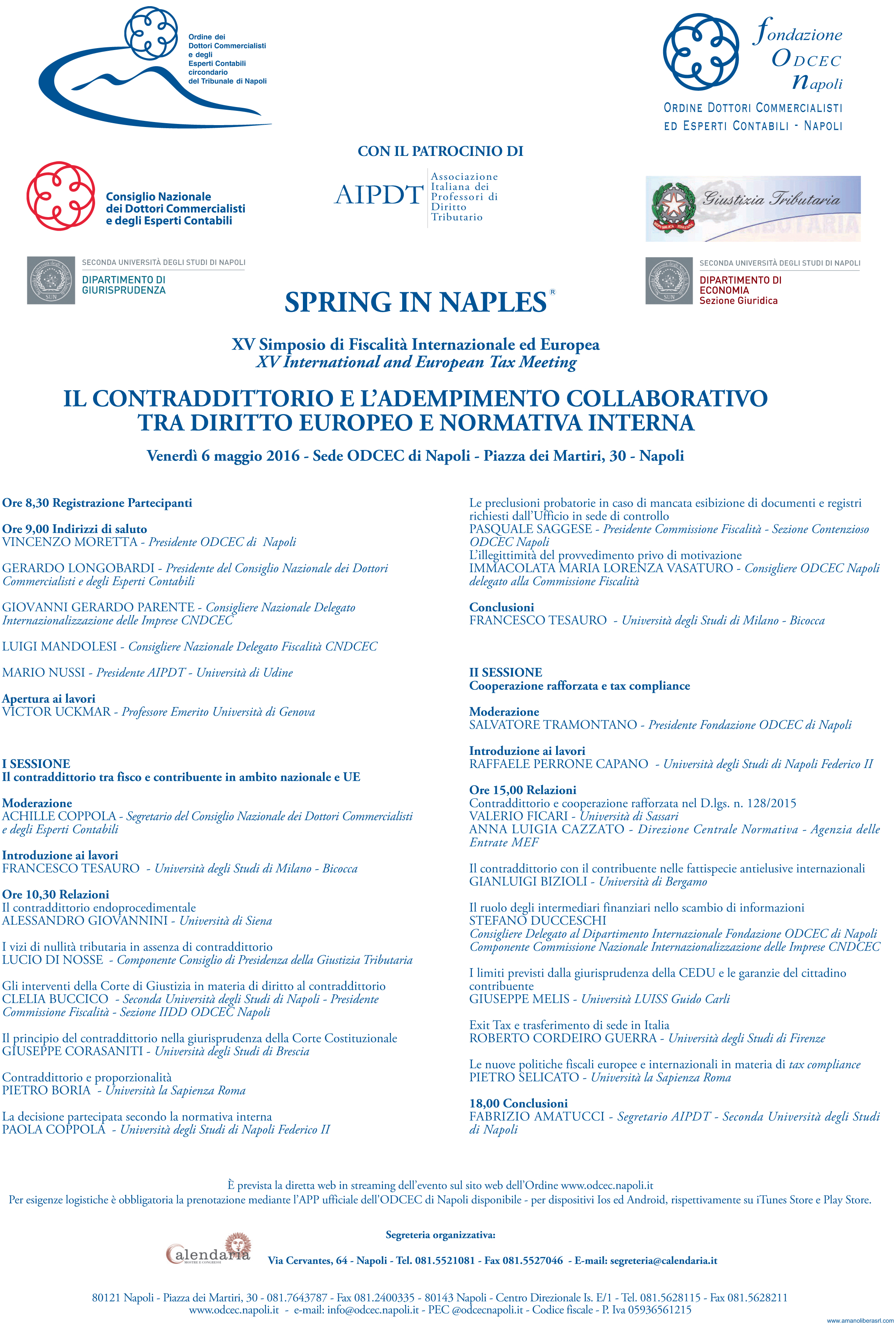 xv simposio di fiscalità internazionale ed europea “il contraddittorio e l’adempimento collaborativo tra diritto europeo e normativa interna”, Napoli 6 maggio 2016