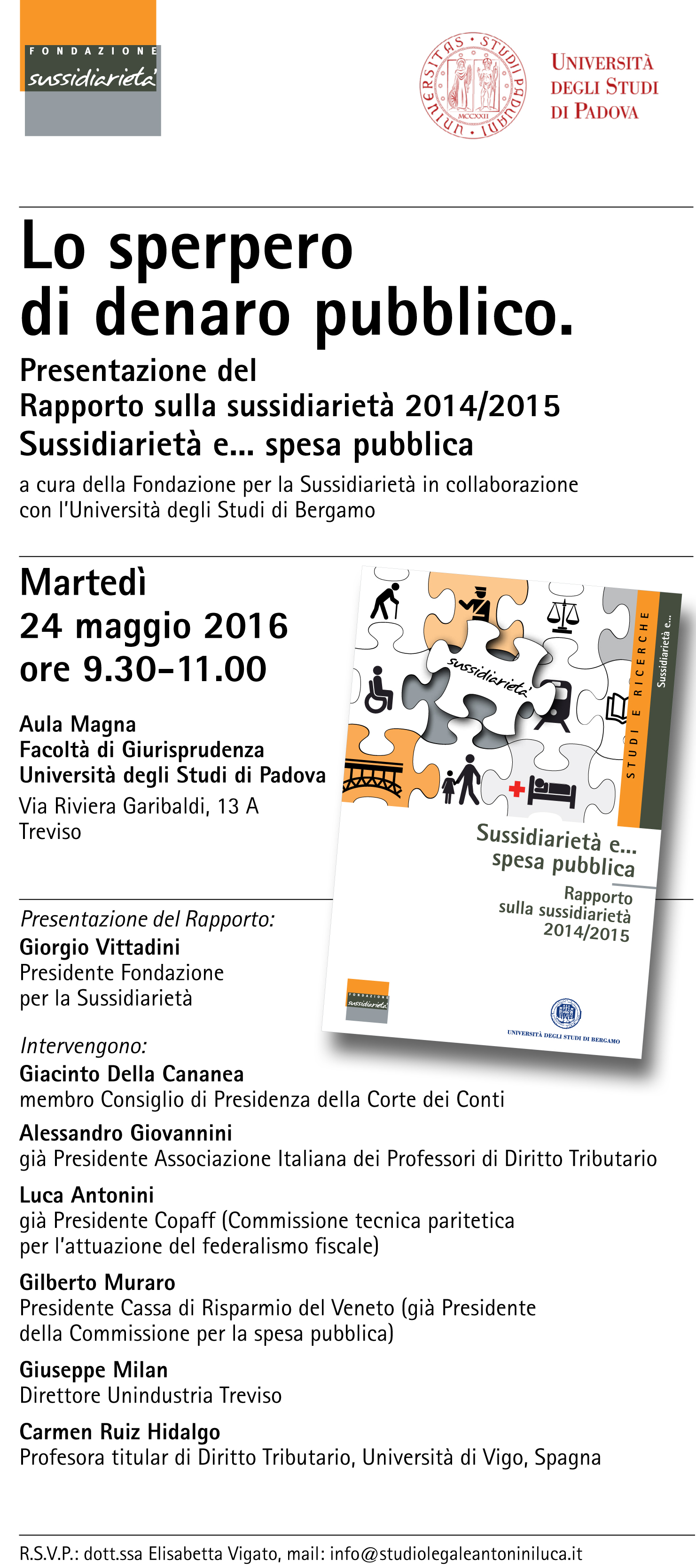 “Lo sperpero di denaro pubblico. Presentazione del Rapporto sulla sussidiarietà 2014/2015 Sussidiarietà e… spesa pubblica”, Padova 24 maggio 2016