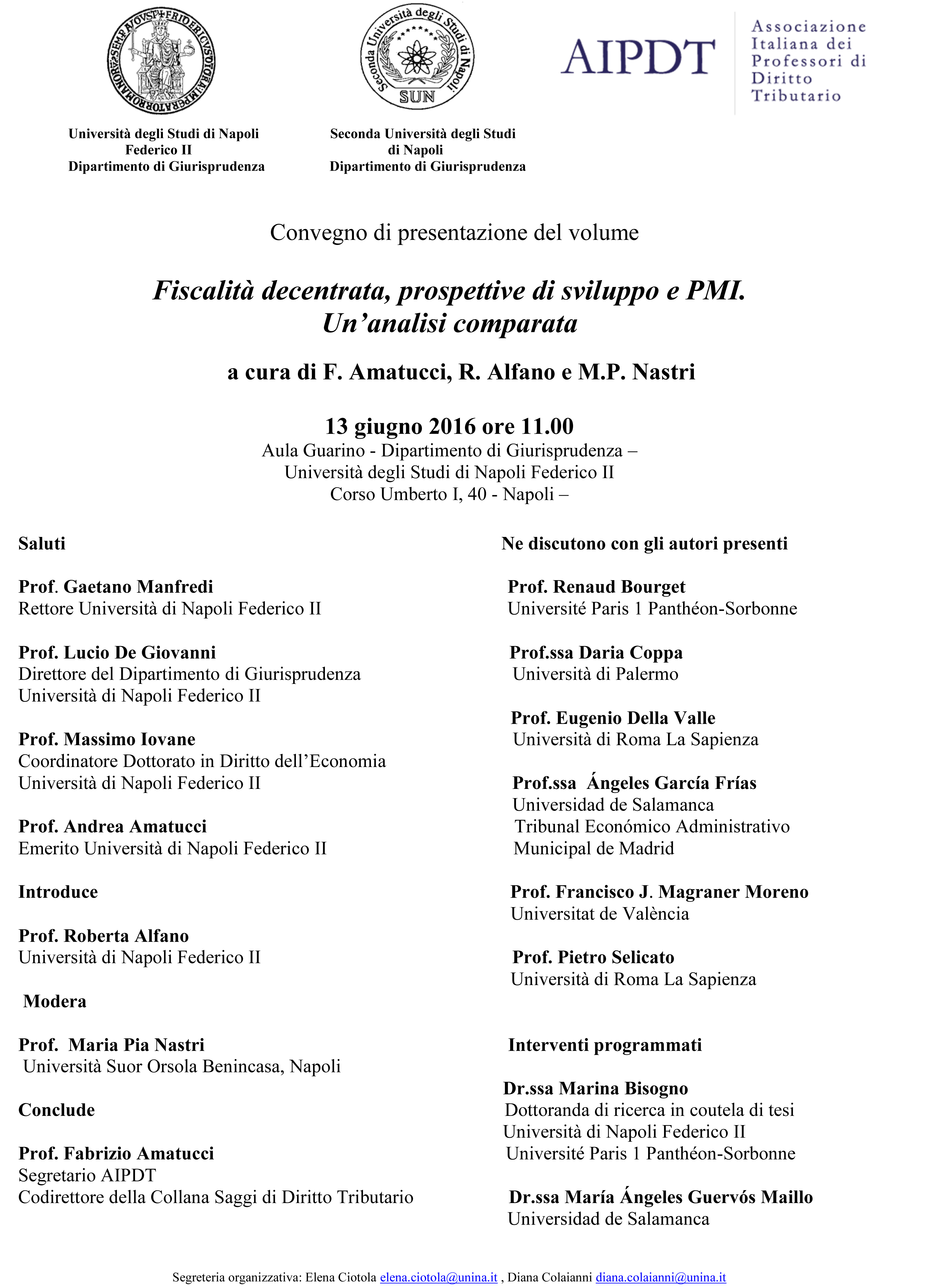 Fiscalità decentrata, prospettive di sviluppo e PMI. Un’analisi comparata, Napoli 13 giugno 2016