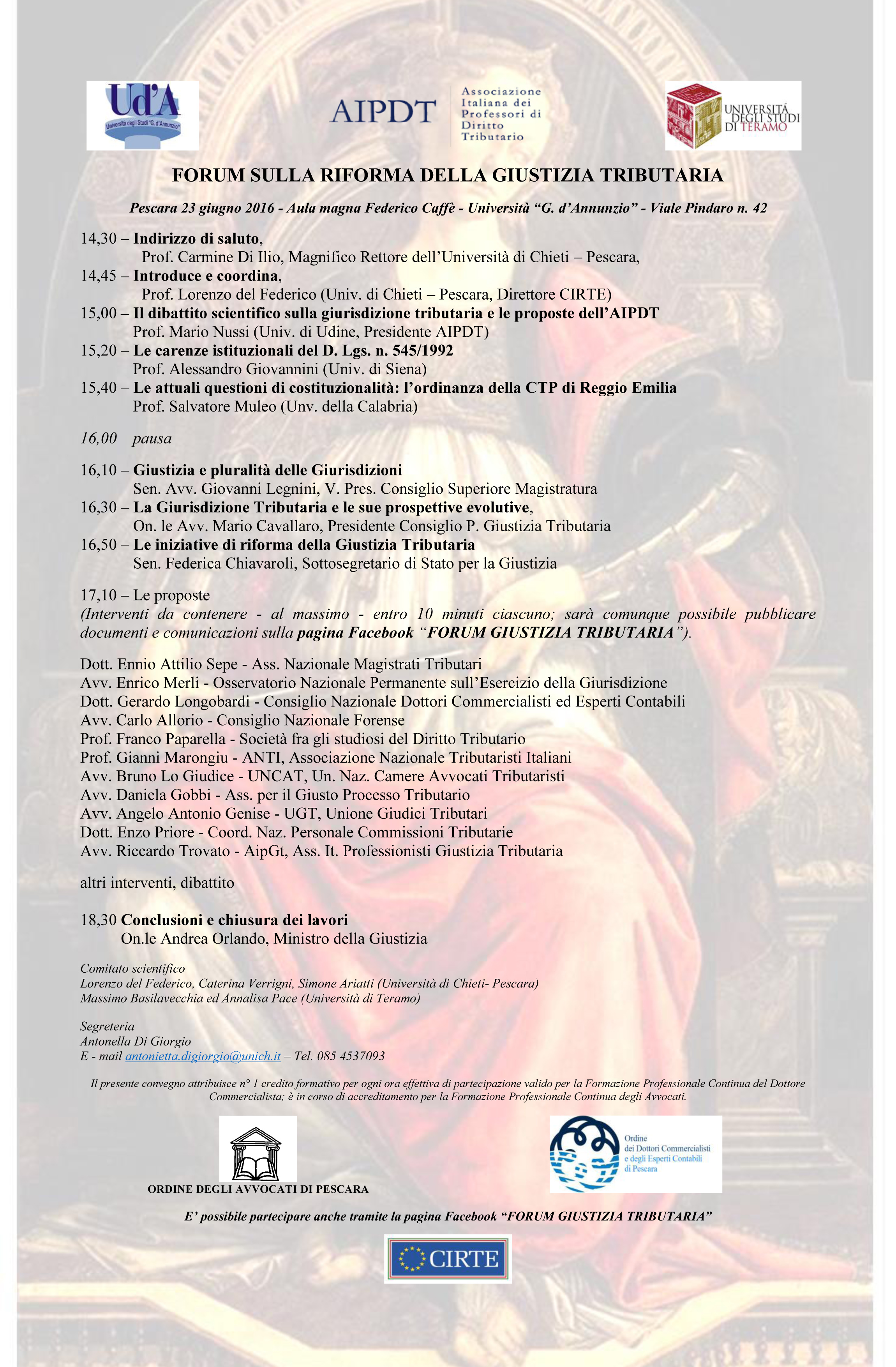 FORUM SULLA RIFORMA DELLA GIUSTIZIA TRIBUTARIA, Pescara 23 giugno 2016