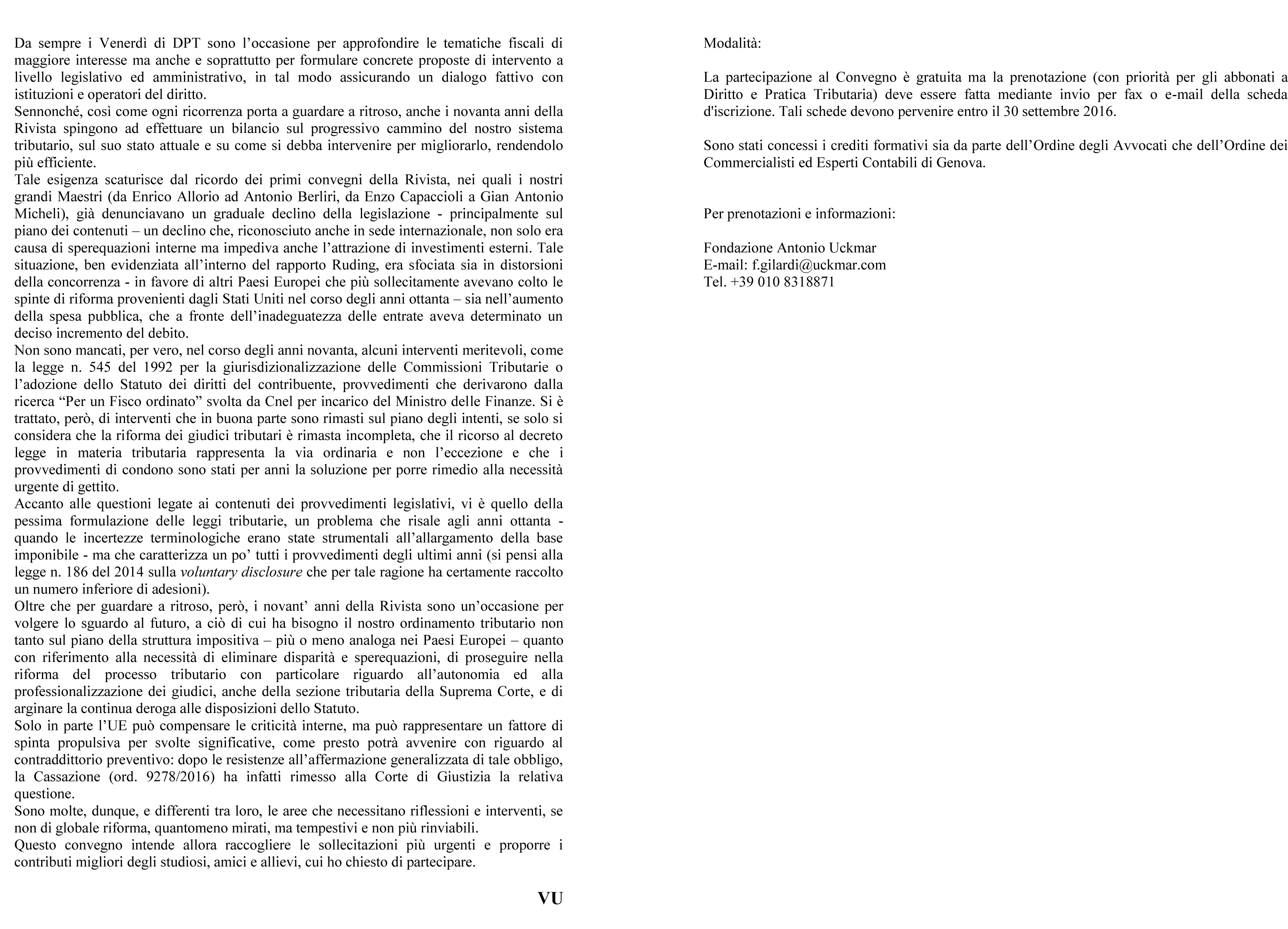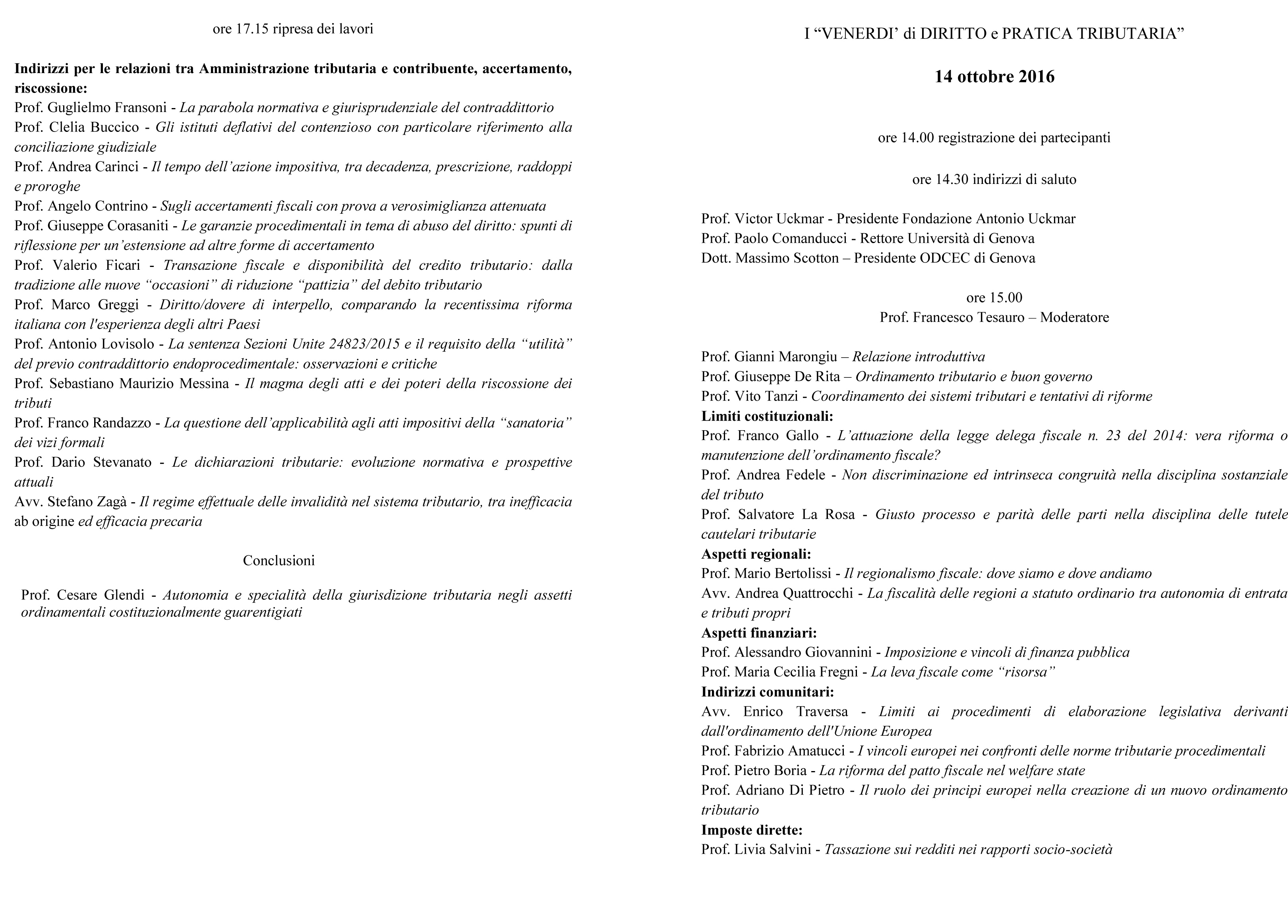 FONDAZIONE ANTONIO UCKMAR – Per un nuovo ordinamento tributario, Genova 14-15 ottobre 2016