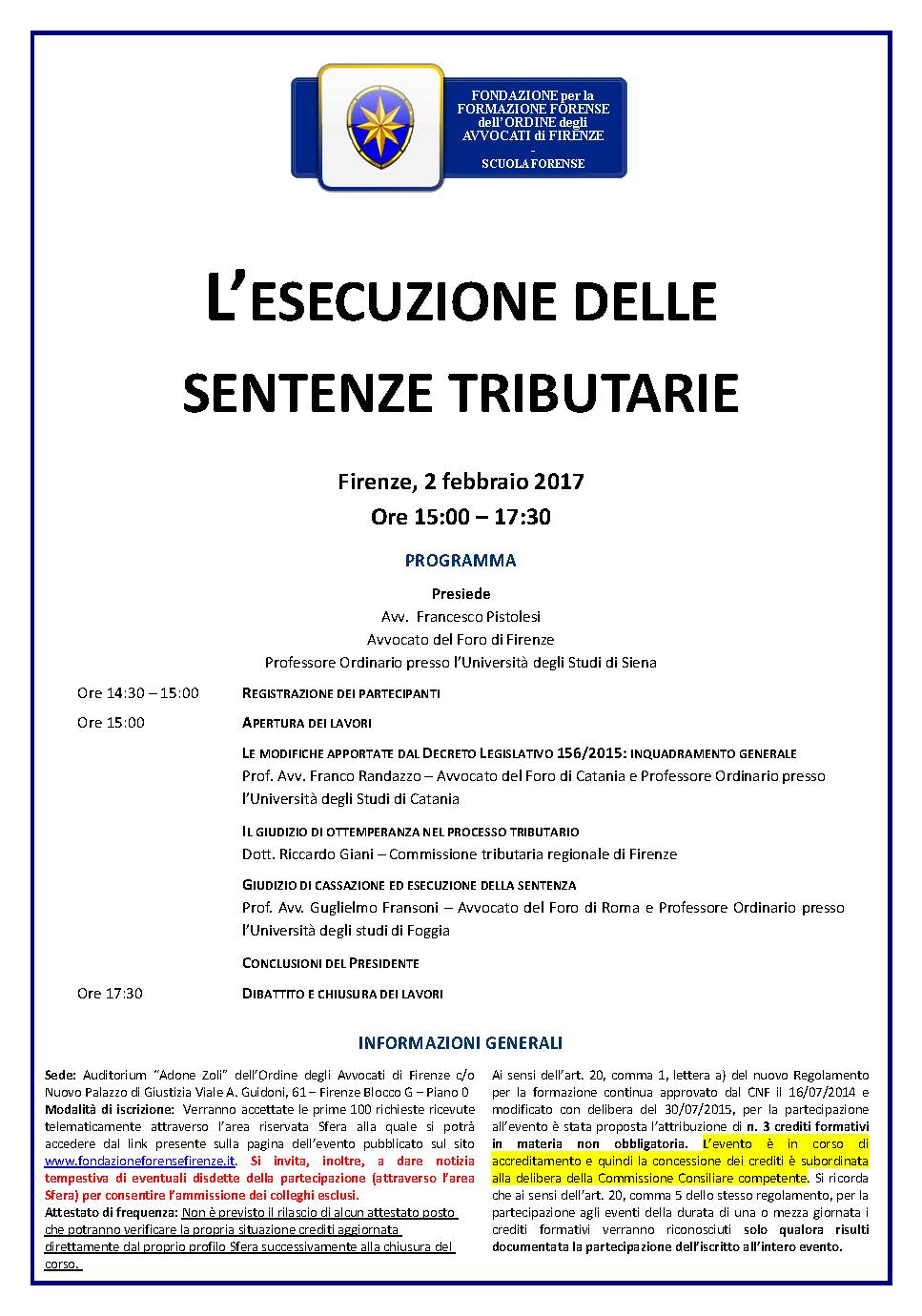 L’ESECUZIONE DELLE SENTENZE TRIBUTARIE. Firenze, 2 febbraio 2017