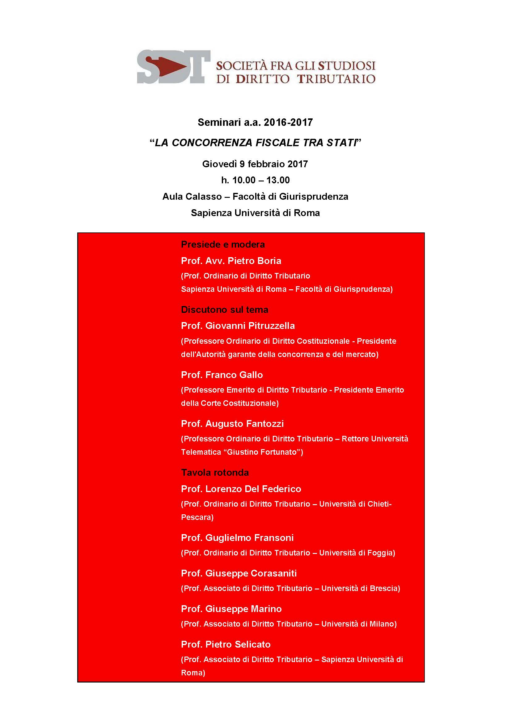 Seminari a.a. 2016-2017 “LA CONCORRENZA FISCALE TRA STATI”. Roma, 9 febbraio 2017