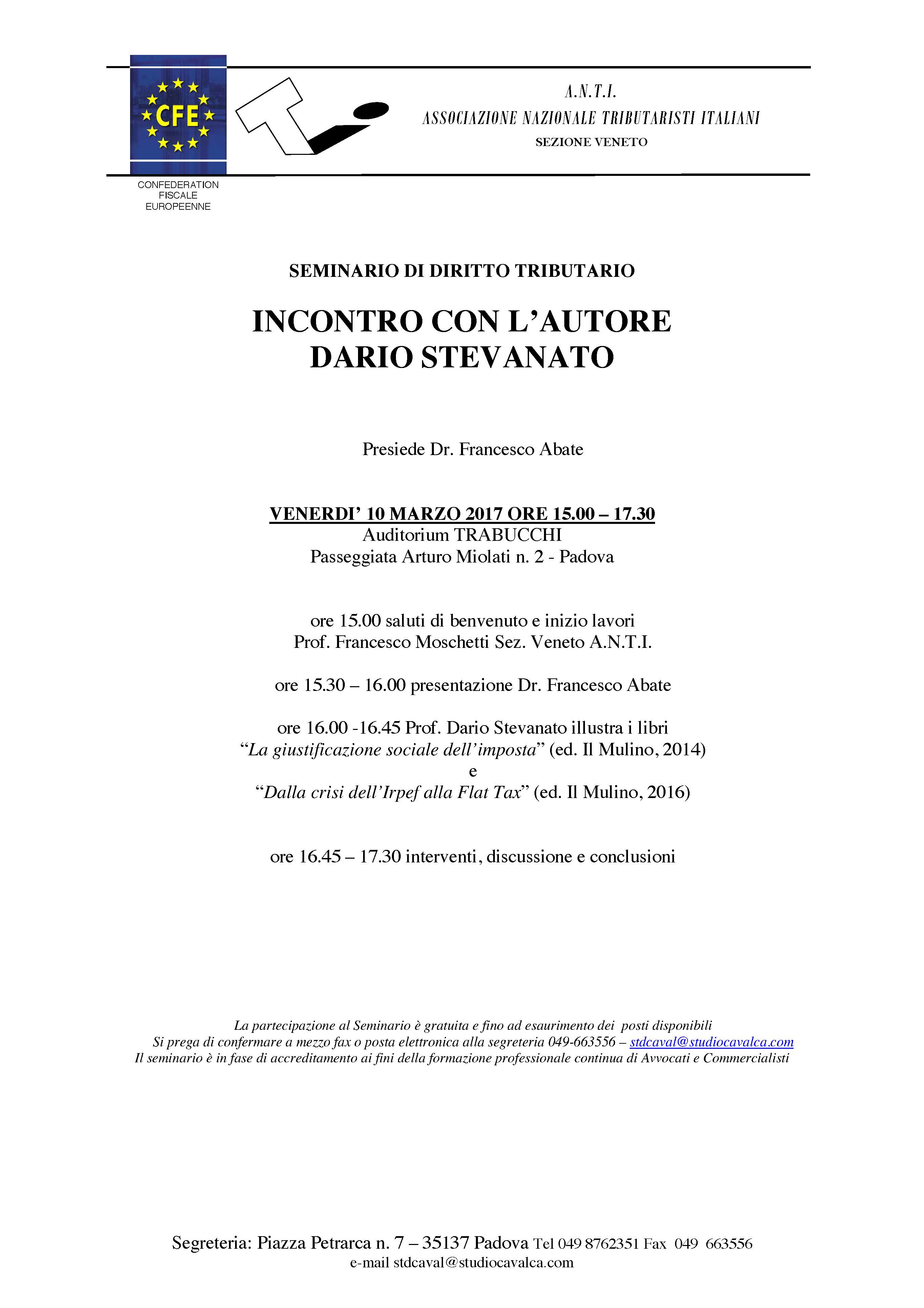 Incontro con l’autore Dario Stevanato. Padova, venerdì 10 marzo 2017