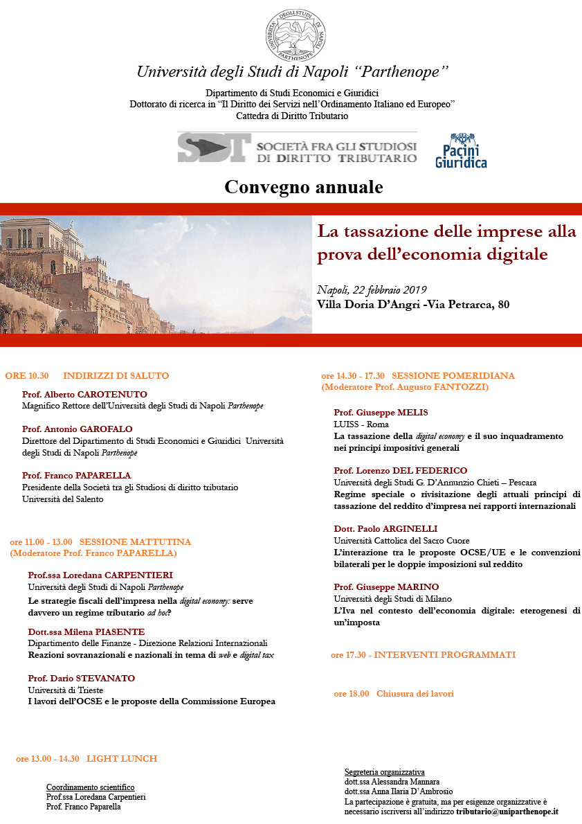 La tassazione delle imprese alla prova dell’economia digitale, Napoli 22 febbraio 2019